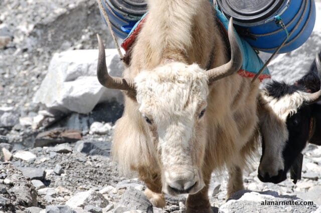 The trail is narrow at times. You need to share with people going lower, those higher, yaks and more.
