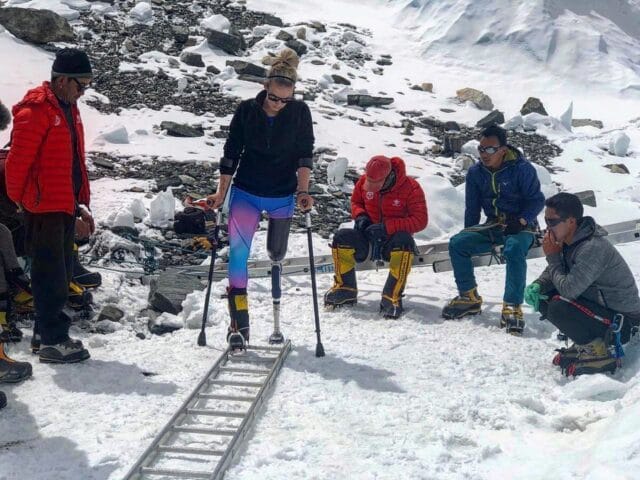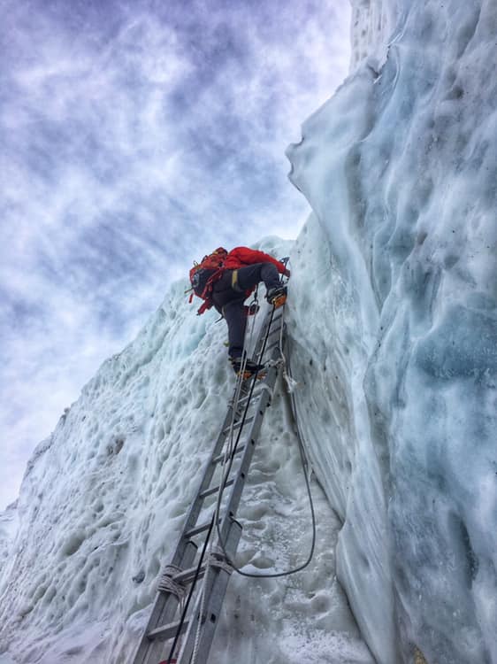 Another training image. This time of Kristie Ennis climbing with Myrmidon Expeditions practicing crossing a ladder with her prosthetic leg.