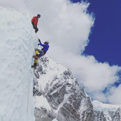 Richard Cost has another dramatic picture. They are training near EBC. Looks like he was using a jumar to go up. He is with Madison Mountaineering.
