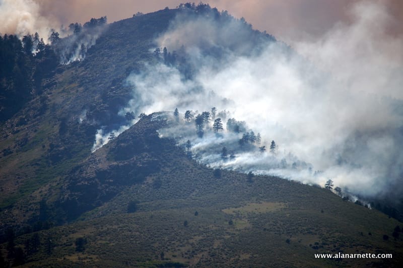 Fire just outside Ft. Collins city limits west of Horsetooth Reservoir. Heavy water and fire retardant drops all day to protect surrounding homes seemed to have stopped this flare up but main fire is moving north. June 11 5PM