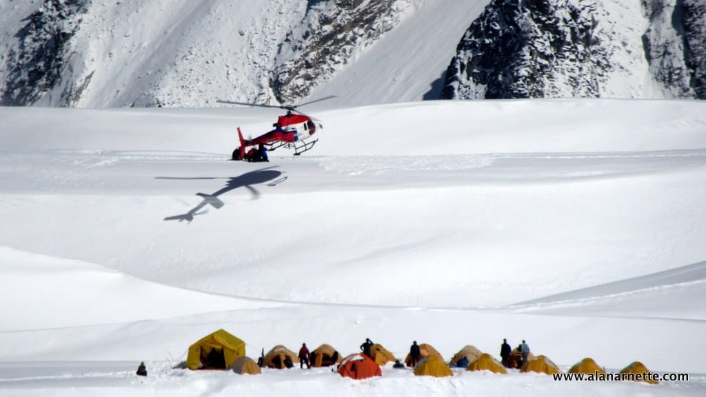 Rescue helicopters in the Western Cwm at Camp 1, cheap 19,500 feet.