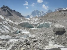 I looked at the glacial ice that cut out the deep valley. A few small lakes emerged as I neared EBC, but mostly it was dirt covered ice with huge pinnacles standing upright like solders at attention. However, it was just a matter of time until they too fell.