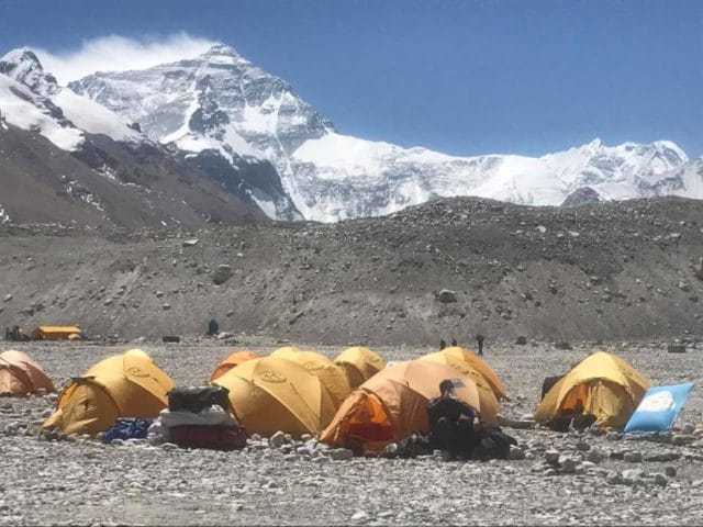 Now that we’re feeling settled in base camp I have a rough idea of what’s going to happen. It looks like we’ll spend the next two days doing local hikes in the area and possibly on Monday or Tuesday begin our first rotation up the mountain. If you couldn’t already tell from these photos, Mt Everest is far away from base camp. Like maybe over 10 miles away far! The trade off is there is no icefall but instead normal hiking trails from here to the mountain. It’s still a physical challenge being that we’ll be hiking well above 20,000 feet on the way. Once you do get to the mountain and begin climbing, which will probably be at least two weeks from now, this side is much more steep and exposed than the Nepal side.