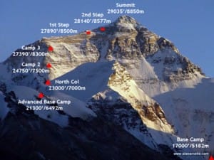We enter the last week of April in a somewhat somber mood. Teams on both sides are spread from base camps up to the low and mid high camps working on their acclimatization programs but fighting high winds. The season continues to be “normal”.