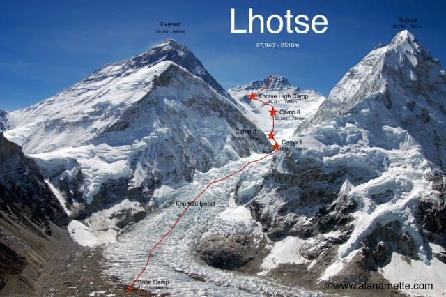 Lhotse shares the route to the Yellow Band with Everest so the LHotse climbers are following same same acclimatization program as most Everest climbers.