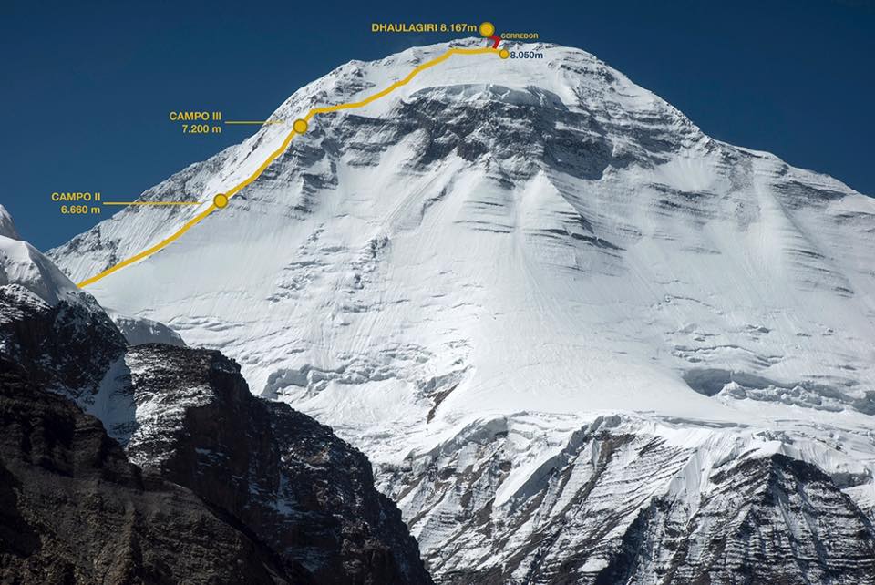 One of the keys to the dhaulagiri is to choose the corridor correctly, about 100 m, which gives access to the Royal Summit. In this season we were the first group to go to the top, so we did not have any reference to previous ascents. We also found the conditions of the final part of the mountain very changed, with regard to last spring.