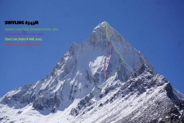Planet Mountain is reporting a new route in the Indian Himalayan on Shivling by Simon Gietl and Vittorio Messini.