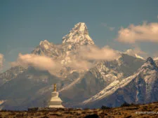 If you go climbing any mountain in the area with Sherpas, they will insist on receiving a blessing from Lama Geshe. There is quite a ceremony to the blessing and it’s common to have to wait for an hour or more if he is currently blessing a team. You wait outside in the small grass yard, surrounded by a stone wall. Perhaps a yak walks by, bells clanging in the background along with the soft flutter of prayer flags overhead.