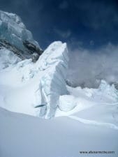 While this all may sound worrisome for those back home, it’s pretty normal to have small serac release onto the Icefall and seracs topple over. Most of this occurs when the sun is directly hitting the area but as we saw in 2014, it can also happen in the early morning hours. All of this just re-enforces that climbers must move as fast as possible, while being safe, especially crossing the ladders. I can tell you from personal experience, that when you cross the last ladder in the Icefall and hit crampon point, you let out a huge sigh of relief.