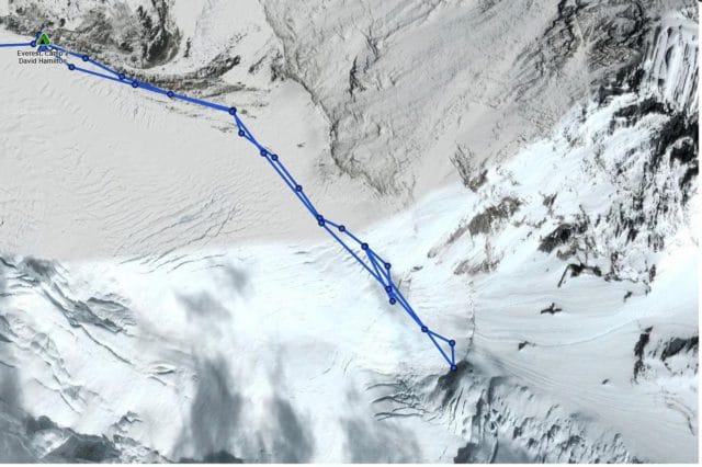 Meanwhile those teams still at Camp 2 took a leisurely stroll to the base of the Lhotse Face. Jagged Globe has a nice track of their route. They added “All team members climbed to 6,750m at the foot of the Lhotse Face. In a cold and clear morning, with no other climbers moving above Camp 2, the team left Camp 2 at 06.00 following the trail to Camp 3. They turned back from the start of the fixed ropes at 08.30, and were back in Camp 2 for breakfast by 09.30. Conditions were a bit colder than expected, but they expect things to warm up a bit before they climb to Camp 3 next week.”