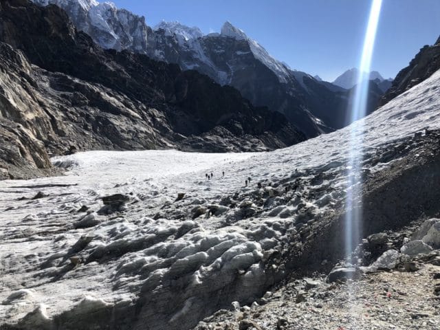 So a good day but I also know that we will be another 2,000-feet higher in a few days. So with two hikes above 17,500-feet, I’m feeling really good about our Island Peak climb. By the way, Island Peak’s proper name is Imja Tse. In 1953 Eric Shipton named it Island Peak because it appears as an island in a sea of ice when viewed from Dingboche. The Nepal government changed the name to Imja Tse.