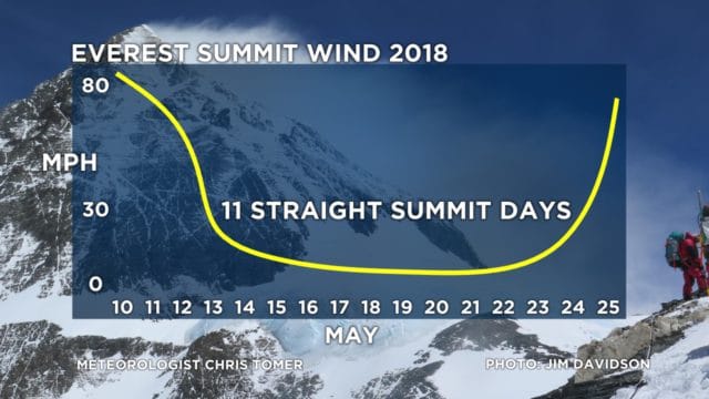 Overall it was about as good of a season as could be expected on the world’s highest peak, record setting in fact! The temperatures were bit warmer than usual and the winds were calmer in spite of the occasional “difficult” summit day. With the long weather window, teams spread out thus reducing the usual crowding we’ve seen before. In 2012 there were less than five suitable summit days forcing hundreds to attempt the peak on the same day, in 2018 there were 11 days of great weather and limited crowds.