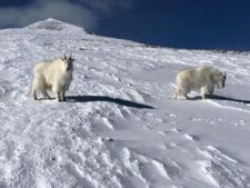 On the way down, I was greeted by the Quandary goats. They were warm in their deep, rich fur coats. The moms looked at me carefully as the kids literally jumped like kids in the snow. They made me smile.