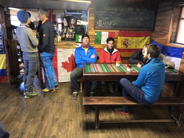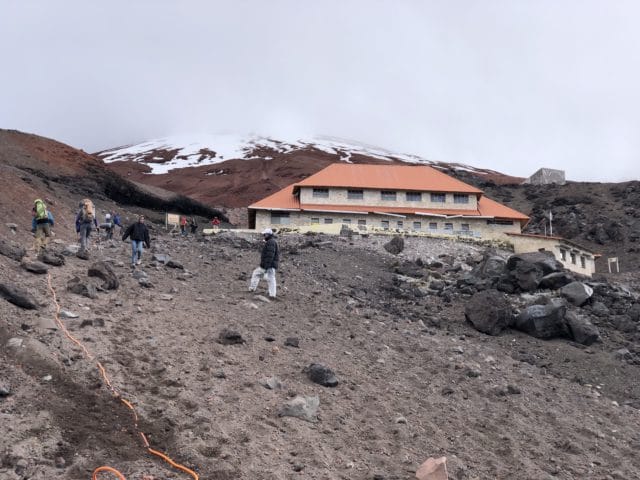 Coto has a nice hut perched at 4,800 m (15,744 ft) on the flanks of the active volcano. The hut has an active history especially when in 1996 on Easter Sunday when an avalanche partially buried the hut along with dozens of tourists. It holds about 90 people in two large dorm rooms with bunk beds and the caretakers serves dinner and breakfast, including at midnight when everyone takes off for their summit push. Another “interesting” point of the hut is that the road ends about 1,000-feet lower thus encouraging anyone wanting to visit, or climb, to hike the dirt path carrying all their gear – good training!