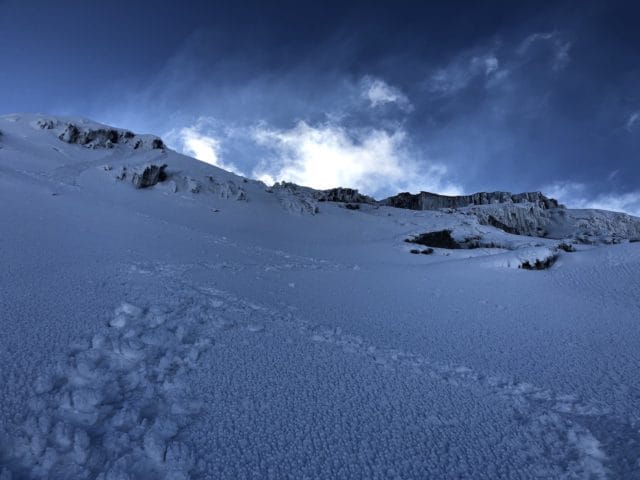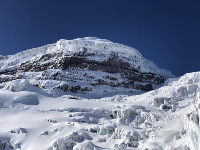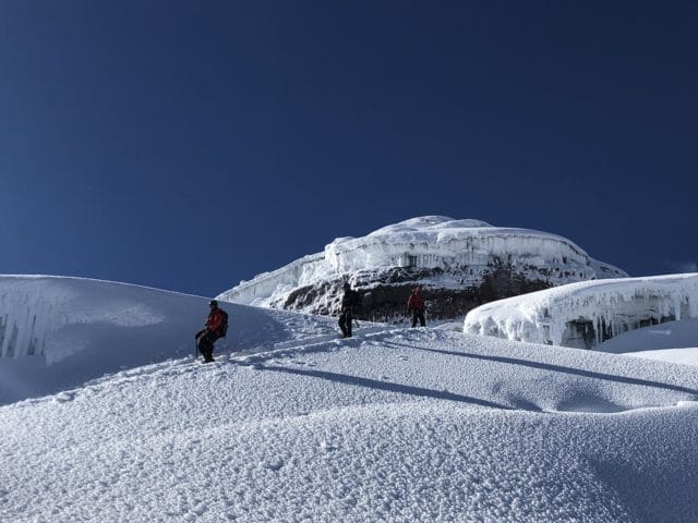 As is normal for these climbs, we left the hut at midnight to climb in the early morning hours to avoid the weather that always develops near the equator.
