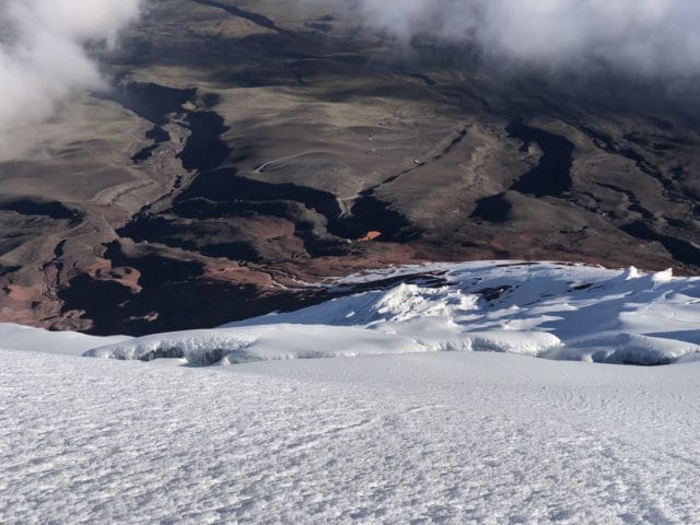Climbing Coto is not technical as in using extra climbing gear (protection, cams, pitons, ice screws, pickets, etc) but is what I would considered “sustained”. After all think of a volcano’s shape – it’s basically a cone with steep sides all around. Cotopaxi is no different. The route starts somewhat steep and gains in angle as you gain in altitude. In general, the last third of the climb was the steepest with angles ranging from 30 to 50 degrees. It was a bit exposed and in some sections, a fall would be serious.