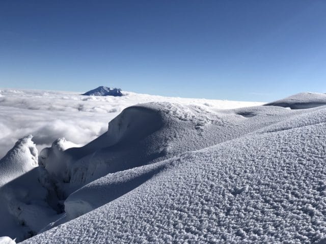 Our Mountain Madness team summited Cotopaxi, 19,348-foot/5897-meters, around dawn this morning January 25, 2019. It was a good climb with everyone making it except for one member who sprained an ankle on Cayambe and stayed in the hut.