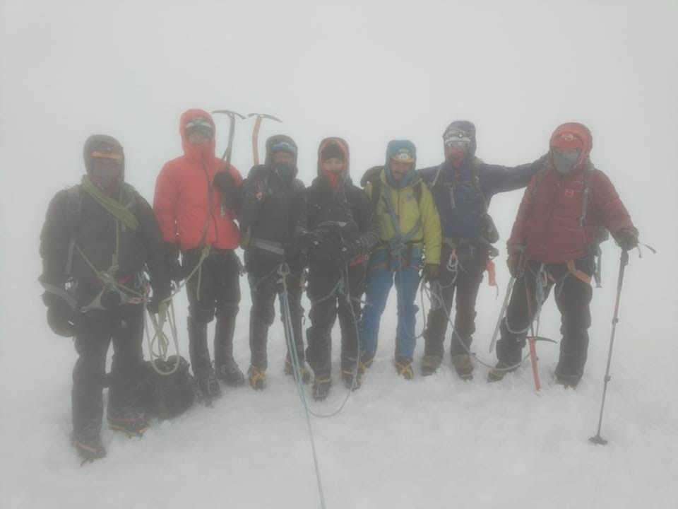The Mountain Madness team on the summit of Pico Veintimilla 20,433-feet