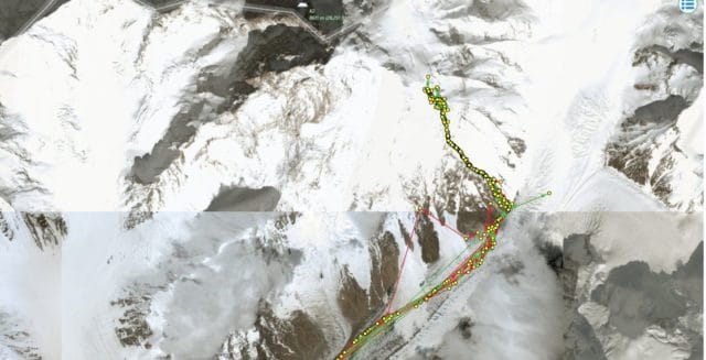 This winter the RUS-KAZ-KYG team reached 7634-meters/25,045-feet and the Basque/Sherpa team topped out at 6,906-meters/22,537-feet according to their respective GPS trackers on the 8,611-meter/28,251-foot peak. Well done by both.