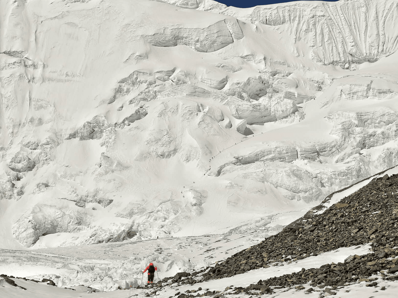 Now, North col itself isn’t a tough objective at all, however sleeping on top of it turned out to be the toughest ever 8000er night for me. Winds were absolutely beyond imagination quite often turning into small local tornadoes. Our tents were well shielded by a big serac wall and still our tents got constantly battered. Every few minutes I would hold onto one side of the tent and my tentmate the other. And then a huge wave of wind came and the entire tent crashed on me. The wind wave was still strong meant that the entire tent was sticking to my face and and my tentmates.