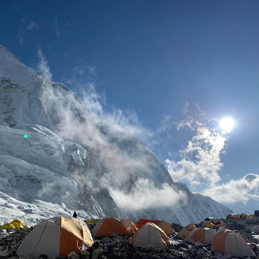 A beautiful image from Garrett Madison of Madison Mountaineering at Camp 2. They will go for their bid this week.