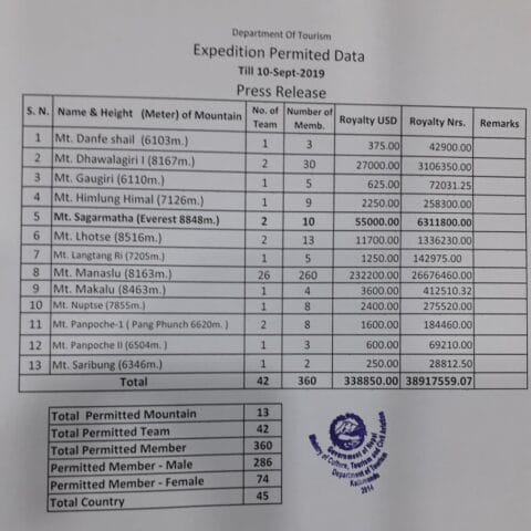 The permit numbers continue to increase as the Nepal Tourism Department issued this update: