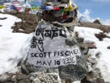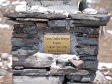 Many of the monuments had new bronze nameplates. Most had worn away after years of wind and rain. Some were famous – Scott Fischer, Babu Chiri. Most were not familiar. Names long since forgotten by the climbing community. Names remembered daily by their families.
