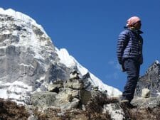 But She had another mission. Before She left home, She received an email that read in part “can you see if his memorial is still there?” This email was from the 80-year-old Father of a fallen Everest climber. The rest of the team had moved on towards the next stop at Lobuche, but She stayed behind. Passang, one of the Climbing Sherpas stayed with her. The Father’s request was on her mind.