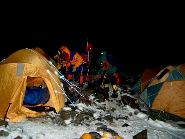 Seven of the team had left two hours earlier, Old Man and two Sherpas plus Couple with their support. That left six members plus their Personal Sherpas and Guide. The group of 13 mulled around their tents in the dark of the South Col.