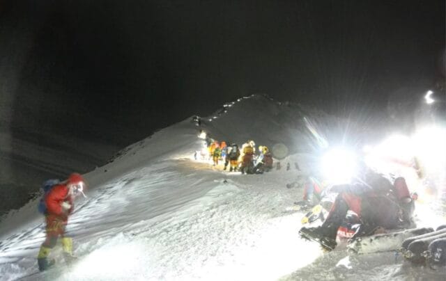 Adventure Peaks: “The tracker is showing the team on the summit, we have had limited comms, more information in the morning when the team is back down.” Update: Members Liam Hanlon, Philip Walton, Stephen Hayes, and Anna Charlotte Person supported by Phurba Wangchhu, Norbu Sherpa,Fu Rinzee Sherpa, Pem Gelze Sherpa,Bir bahadur Tamang (Bire), Phursemba Sherpa.