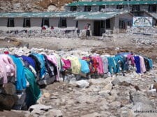 Everest climbs from Nepal begin in Kathmandu, with a flight to Lukla at 9,500 feet. From there, climbers take about ten days to trek through the Khumbu region. Following a well-defined dirt trail, almost a road, going from teahouse to teahouse until reaching EBC. This is an awesome experience alone, without a climb.
