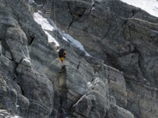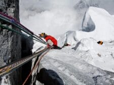The next challenge is the Lhotse Face, between Camps 2 and 3. It’s steep, with hard ice. The route is fixed with a rope. The angles can range from 20 to 45 degrees. From Camp 3, climbers continue higher, crossing the Yellow Band, a rock layer limestone rock layer throughout this part of the Himalayan Range. It’s not difficult to climb, but it can be challenging, given the altitude. Bottlenecks can occur on the Yellow Band.
