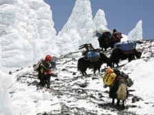 Tibet charges between $15,800 and $18,000 per person for a team permit of 4 or more. This price includes transportation from the entry point in China (usually Lhasa or Zhangmu–Kodari) to base camp, hotels, liaison officer, trash fee, five yaks in, and four yaks out per member. In addition, there is an extra charge of $200 per day per person for time spent in Lhasa. If you want to bring a Nepali Sherpa to climb with you in Tibet, budget an additional $4,500 for each Sherpa’s “work permit,” as required by the CTMA, plus a salary of $5,000.