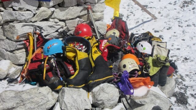 “Tomorrow, we will have our Puja. Bring your harness, crampons, ice axes and anything sharp to the ceremony.” Guide announced over a dinner of lamb, rice and tomato soup. Old Man stood up. Everyone looked at him, not sure what to expect. “Last year, at our Puja, I was changed. I was skeptical of these types of ceremonies, here and back home, but seeing the seriousness the Climbing Sherpas took the Puja caused me to look at them differently. With even more respect, with more admiration. So, if you don’t want to participate, that’s OK. It’s really for the Sherpas, but they welcome us to join.”